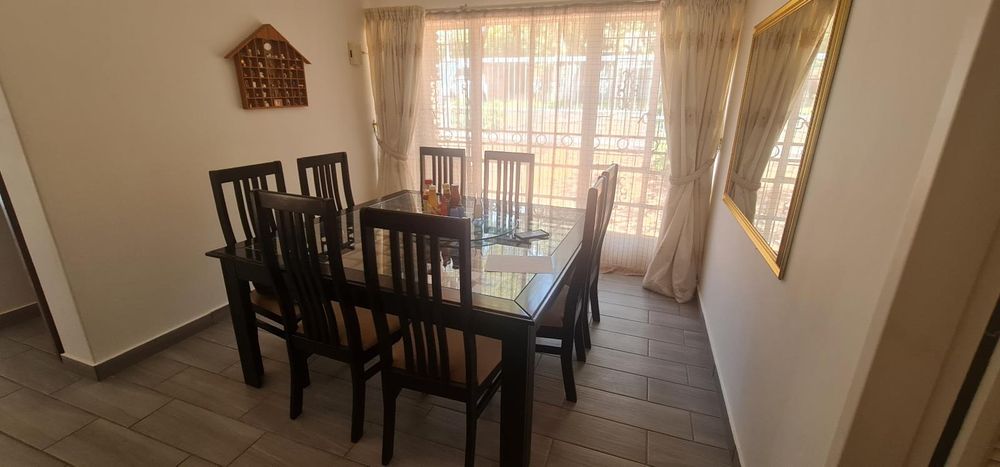 The inviting layout flows from the living and dining areas to a functional kitchen at the heart of the home. Step outside and enjoy your own private haven — complete with a sparkling swimming pool, entertainment lapa, and a neat, established garden that’s perfect for weekend braais and family gatherings.